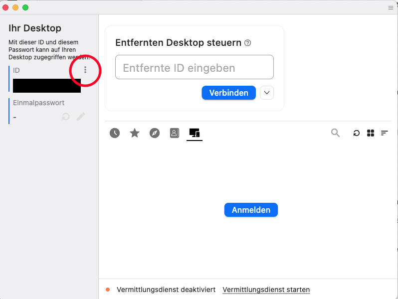 Klicke im linken Bereich bei „Ihr Desktop“ auf die drei Punkte neben deiner ID (siehe Bild 2, rot markiert).
